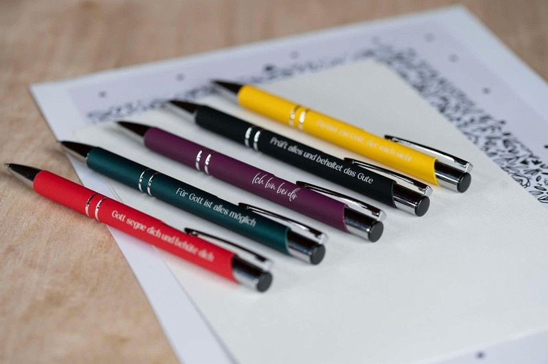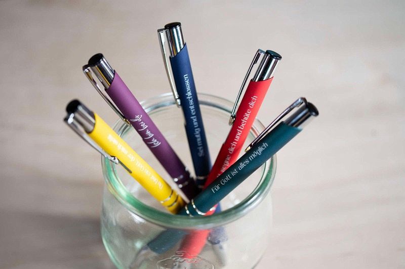 Die schönen Kugelschreiber mit aufgedruckter Botschaft sind der perfekte Begleiter für jeden Tag. In dem ungewöhnlichen runden Etui ist der Stift ein ideales Geschenk zum Geburtstag oder zu Weihnachten oder einfach nur so für alle Schreibbegeisterten.