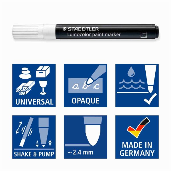 Für die deckende Beschriftung, Dekoration und Gestaltung fast aller hellen und dunklen Oberflächen wie z;B; Papier, Karton, Plastik, Metall, Glas, Keramik, Holz, Stein etc;