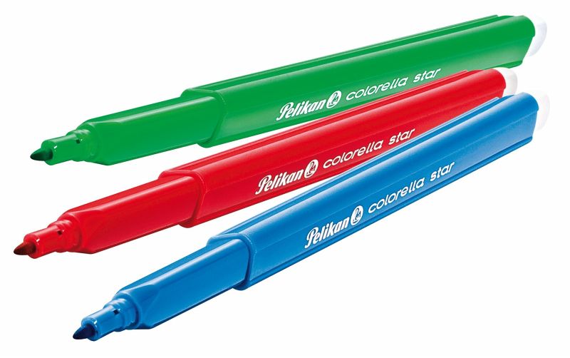 Etui mit 10 Stiften. Dreieckige Fasermaler mit besonders gutem Halt für die Kinderhand. Strichbreite ca. 1mm. Tinte auf wasserbasis und auswaschbar aus den meisten Textilien. Kappen sind ventiliert. Farbig sortiert. Robuste Spitze.