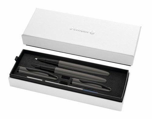Perlmutt-schimmernd lackiertes Ober- und Unterteil; Clip, Ring und Spitze farblich veredelt; Robuster Clip durch federnd gelagerte Anbringung; Metall-Füllhalter mit Patronenfüllsystem; Polierte Edelstahlfeder in mittlerer Strichstärke; Ausgestattet mit einer Pelikan Großraum-Tintenpatrone; Blaue Füllhaltertinte; Metall-Roller; Ausgestattet mit wechselbarer Pelikan Großraum-Mine.