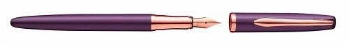 Metall-Füllhalter mit Patronenfüllsystem; Polierte Edelstahlfeder in mittlerer Strichstärke; Perlmutt-schimmernd lackiertes Ober- und Unterteil; Clip, Ring und Spitze farblich veredelt; Robuster Clip durch federnd gelagerte Anbringung; Ergonomisch ausbalanciertes Gewicht; Ausgestattet mit einer Pelikan Großraum-Tintenpatrone; Schreibfarbe Königsblau.