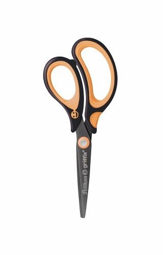 Die Pelikan griffix® Schere mit spitzer Klinge ist ideal für kleinere, filigrane Schneidarbeiten. Die Klinge der Schulschere ist dank einer Titan-Nitrid-Beschichtung 3 x härter als Stahl. Dank des ergonomischen Griffs liegt die Schere bei Kindern besonders gut in der Hand. Das harte und weiche, hochwertige Kunststoff des Griffes ist PVC- sowie latexfrei. Wie beim beliebten griffix® Schreiblernsystem sorgt das lachende griffix®-Gesicht für die richtige Handhaltung. Mit Namensfeld. Pelikan gewährt auf die griffix® Schulschere 25 Jahre Garantie!