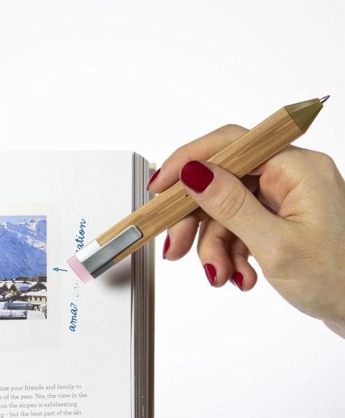 Das gab es noch nie: Das PenBookmark ist ein Gelstift, der so flach ist, dass er sogar als Lesezeichen im Buch bleiben kann. Der Tintenroller ist ideal für Notizen, denn die thermosensitive Tinte kann rückstandslos radiert und überschrieben werden.Die neue Geltinte ist thermosensitiv und verschwindet ab einer Temperatur von ca. 60°C. Der Radierer erhitzt die Tinte durch Reibungswärme ohne Beschädigung des Papiers, so dass die Tinte rückstandslos unsichtbar wird. Nach einiger Zeit im Gefrierfach (-10 °C) würde das Geschriebene wieder erscheinen. Die Tinte ist deshalb NICHT dokumentenecht!- superdünn: nur 4 mm "dick"- radierbarer TintenrollerIm Set mit 2 ErsatzminenMaße Stift: 15 x 1,5 x 0,4 cm