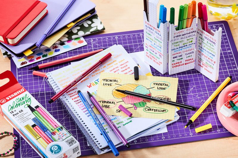 65 Premiumfarben inklusive Neon und Pastell versprechen Kreativität ohne Ende – kein Wunder, dass der STABILO Pen 68 perfekt zu den aktuellen Trends rund um Journaling, Sketchnotes oder Hand Lettering passt. Aber auch Fans von Mandalas sowie Freunde des Malens und Zeichnen sind begeistert von der Vielseitigkeit des hochwertigen „Filzers“. Kreative und (Hobby-)Künstler lieben die große Vielfalt, mit der sich jede Idee farbenfroh umsetzen lässt. Die robusten Spitze sorgt dabei für eine gleichmäßige Farbabgabe und eignet sich hervorragend zum Ziehen von kräftige Linien und Füllen von deckenden Flächen. Ganze 24 Stunden kann er ohne Kappe offen liegen, ohne auszutrocknen – perfekt, wenn das kreative Projekt mal etwas mehr Zeit in Anspruch nimmt.