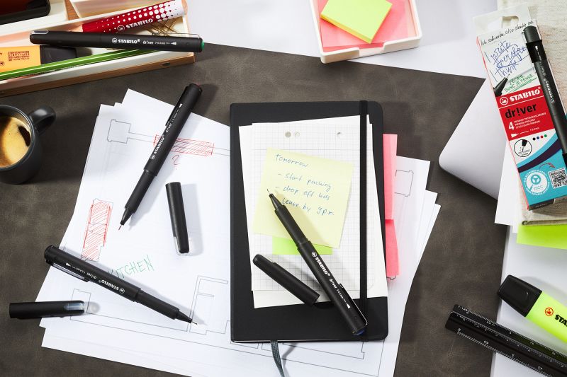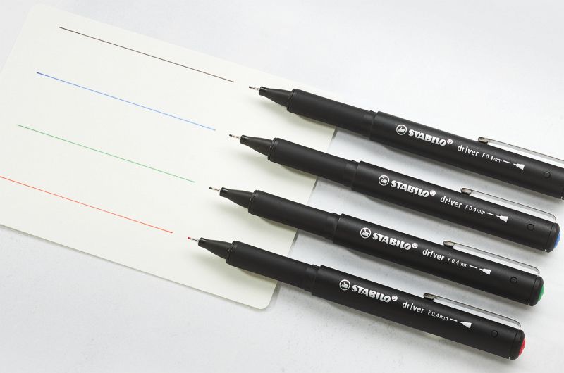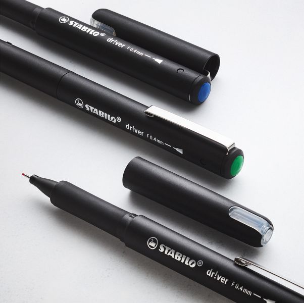 Der STABILO dr!ver Fineliner ist das perfekte Accessoire für alle Schreibanlässe. Ob im Büro, im Unterricht oder zu Hause – der Fineliner ist ein zeitloses, schlichtes und sehr zuverlässiges Schreibgerät. Die dünne 0,4 mm Spitze ist gefedert und sorgt für ein sanftes und müheloses Schreibgefühl. Der Stift im modernen schwarzen Design ist außerdem mit einem Metallclip ausgestattet, mit dem er an einer Tasche oder einem Notizbuch befestigt werden kann. Im Set mit den vier Farben rot, grün, blau und schwarz ist er für langes Schreiben oder Zeichnen eine hervorragende Wahl.