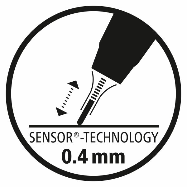 - gefederte, metallgefasste Fineliner-Spitzer mit einer Strichstärke von 0,4 mm in den Farben rot, grün, blau und schwarz