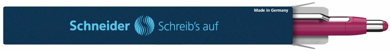 Kugelschreiber, der klassisches Design mit modernen Stilelementen vereint. Für ein unverwechselbares Erscheinungsbild sorgen der teilweise versenkte Metallclip, sowie die farblich abgestimmten gummierten Streifen. Eine im Griffbereich als Interpretation des Firmenlogos umlaufende Dreifachlinie aus Weichkunststoff dient zusätzlich der Rutschfestigkeit. Auswechselbare Großraummine Slider 755 extrabreit (XB) mit Viscoglide®-Technologie für außergewöhnlich leichtes und gleitendes Schreiben. Gehäusefarbe boysenberry, Schreibfarbe blau, dokumentenecht nach ISO 12757-2. Die verschleißfeste Edelstahlspitze garantiert, dass der große Pastenvorrat vollständig und schmierfrei genutzt werden kann. Der Epsilon hat einen federnden Metallclip und ist durch das clevere Plug+Play-System mit verschiedenen Minenformaten nachfüllbar.