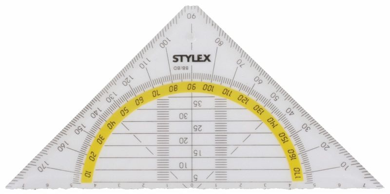 Geometriedreieck, klassische Ausführung, 16 cm, aus Kunststoff, mit farbig hinterlegter Gradskala, in SB-Verpackung