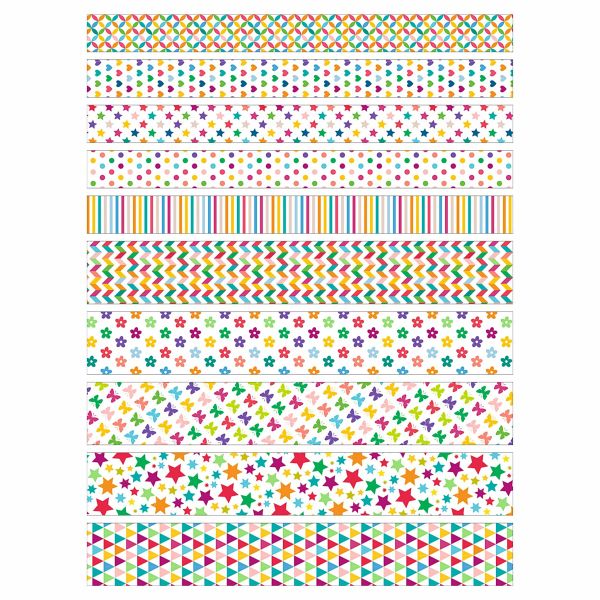 40 Faltstreifen (1,5 x 45 cm) sortiert in 5 Designs und 20 Faltstreifen (2,5 x 86 cm) sortiert in 5 Designs (aus hochwertigem Bastelpapier, 120 g/m², beidseitig bedruckt und teilweise folienveredelt), 50 Schmucksteine und Halbperlen