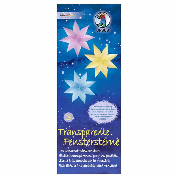 Transparente Fenstersterne "bunt", Set enthält Materialien für 80 Blatt Transparentpapier 115 g/m² einseitig bedruckt 6 x 16 cm, sortiert in 5 Farben, inklusive Bastelanleitung - made in Germany