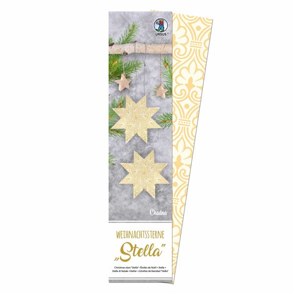 Weihnachtssterne "Stella, Indian Style Chadna", Set enthält Materialien für 4 Sterne Durchmesser: 30 cm, Inhalt: 33 Blatt Shimmer paper 120 g/m² 7 x 30 cm, einseitig bedruckt, weiß/creme, inklusive Faltanleitung