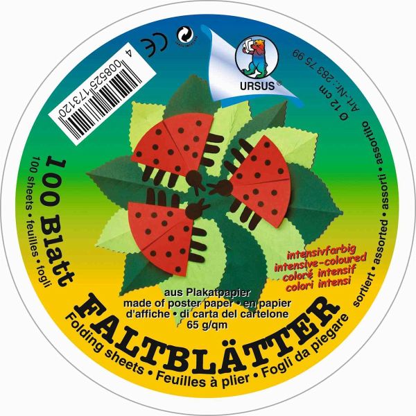 100 Faltblätter intensiv aus Plakatkarton (65 g/m², Durchmesser: 12 cm, sortiert in 10 Farben) - "Made in Germany"