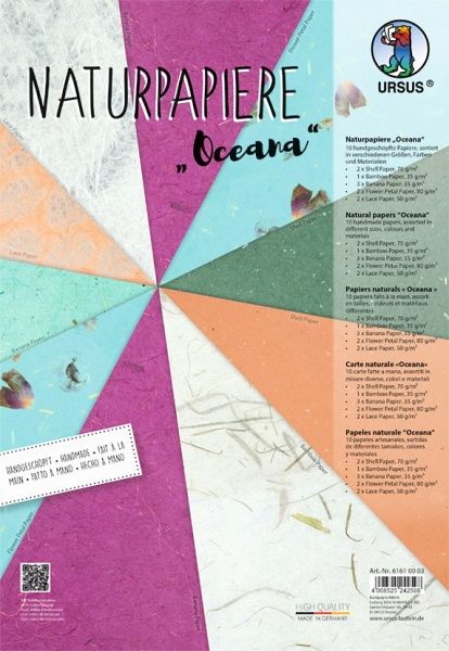 Naturpapiere sind im Trend! 10 Blatt handgeschöpftes Naturpapier in verschiedenen Größen, Farben und Qualitäten in der Sortierung "Oceana" - Scann Sie den aufgedruckten QR-Code, um ein Anleitungsvideo zu sehen. - Made in GermanyHinweis: Dieser Artikel kann nur an eine deutsche Lieferadresse ausgeliefert werden.