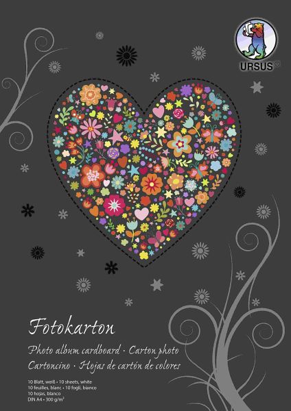 Fotokarton-Block (300 g/m², Format DIN A4, 10 Blatt, weiß) mit hochwertigem Deckblatt (partieller Relief-Hochglanzdruck, veredelt mit kratzunempfindlicher Mattfolie) - URSUS®-Qualität: aus Frischzellulose (daher hohe Farbbrillanz und Lichtbeständigkeit) - "Made in Germany"