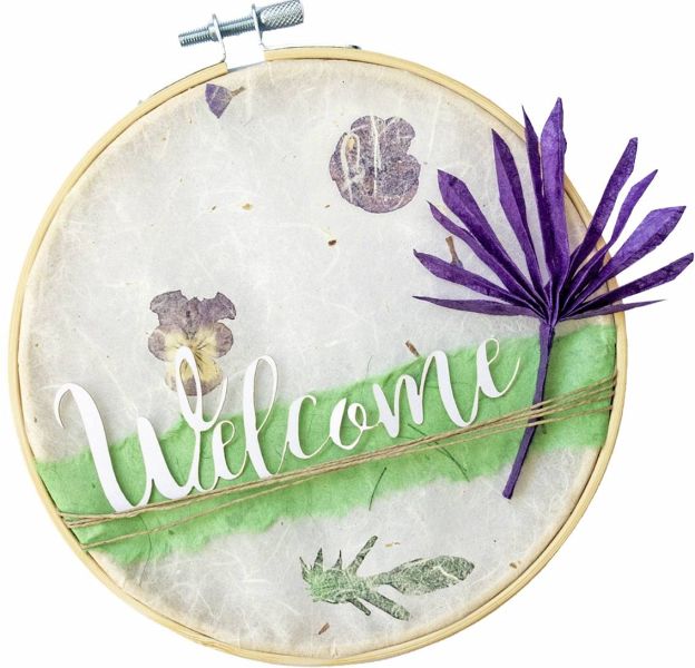 Komposition aus Naturpaieren (Format: 23 x 33 cm), zum Teil mit Einschlüssen aus getrockneten Blättern und Blüten. Set enthält zehn hochwertige Naturpapiere und einen Kraftkarton. - "Made in Germany"
