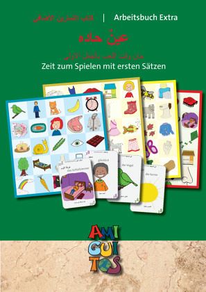 Sprachlernspiel für Arabisch für Lerner aus dem Sprachraum Deutsch.Zeit zum Spielen mit ersten Sätzen. Ein vielfältiges Spiel bei dem Schnelligkeit gewinnt!3 in 1: Setzen Sie die 100 Flashcards in Ihrem Sprach-Unterricht ein. Spielen Sie mit Ihren Schülern Quartett oder das neue Spiel.Wer am schnellsten seine fünf Begriffe auf den Spielfeldern wiedergefunden hat, ist das nächste Superauge! Doch nur, wer die Begriffe korrekt benennen kann, sammelt Punkte. Das Vokabular wird mit Spaß und Spiel gefestigt.Fortgeschrittene Spieler erhalten nur Punkte, wenn sie einen passenden Satz mit dem Begriff bilden können! Eine zusätzliche Spielvariante ist das "Begriffe raten". Ein einfacher Satz zum Begriff ist als zusätzlicher Sprachlernanreiz auf jeder Flashcard enthalten.100 Flashcards in A8 mit Grundbegriffen zum Ausschneiden für den Sprachunterricht und als Lernkarten und mehrfacher Spielspaß.Optimal für Kleingruppen bis acht Mitspieler geeignet, aber auch allein als Lernhilfe oder in Großgruppen mit Spielvarianten geeignet.Für Spieler ab 6 Jahren, bis Sprachniveau A1 / A2.