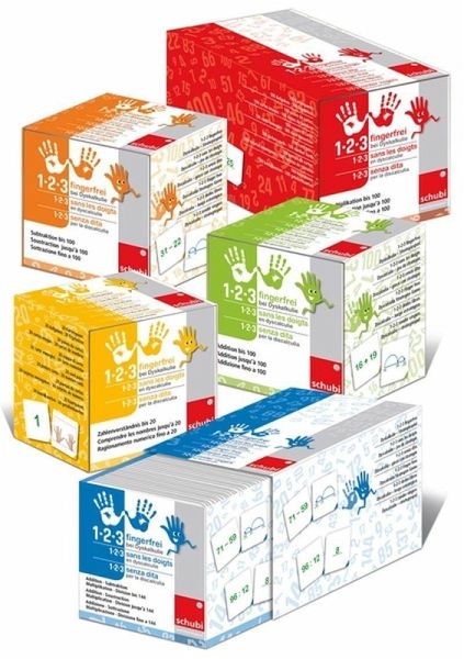 Die Memo-Spiel-Reihe '1-2-3 fingerfrei' mit Strategiespielen zur Dyskalkulie bietet Therapeutinnen und Pädagogen wichtiges Material für den gezielten Aufbau des mathematischen Basiswissens mit Hilfe von Rechenstrategien. Kinder mit Rechenschwäche werden dabei unterstützt, sich ihr mathematisches Wissen ohne Zählen anzueignen, es durch spielerisches Training zu automatisieren und zu verbessern. Die Aufgaben der fünf Schachteln können aufeinander aufbauend, aber auch unabhängig voneinander eingesetzt werden. Jede Box als stabile Schiebeschachtel.