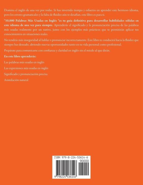 Domina el inglés de una vez por todas. Si has invertido tiempo y esfuerzo en aprender este hermoso idioma, pero los errores gramaticales y la falta de fluidez aún te desafían, este libro es para ti. "10,000 Palabras Más Usadas en Inglés "es tu guía definitiva para desarrollar habilidades sólidas en este idioma de una vez para siempre. Aprenderás el significado y la pronunciación precisa de las palabras más usadas realmente por un nativo, junto con los ejemplos más prácticos que te permitirán aplicar tus conocimientos en situaciones reales. No tendrás más inseguridad al hablar o pronunciar incorrectamente. Este libro te conducirá hacia la fluidez que siempre has deseado, abriendo nuevas oportunidades tanto en tu vida personal como profesional. Prepárate para comunicarte con confianza y claridad en inglés sin el miedo al que dirán. En este libro aprenderás: Las palabras más usadas en inglés Las expresiones más usadas en inglés Significado y pronunciación precisa Asimilación natural