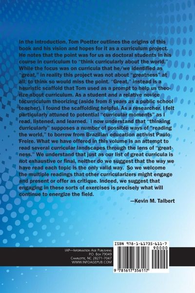 10 Great Curricula is a collection of stories written by educators who have come to understand curricula differently as a result of their engagement with a graduate course and its instructor. The book represents the best of what can be found in teaching and learning, in general, and in the quest for meaningful ways to understand curricula in particular. The co-authors of this volume on "10 Great Curricula" framed their inquiries into progressive, democratic curricula, at least initially, through Marsh and Willis' (2007) notions of planned, enacted, and lived curricula. These frames helped the writers think about how to engage a curriculum as it is developed, delivered, and lived by its participants, and for the inquirers to actually become participantinquirers in the curriculum at hand. The chapters depict the power, the possibility, and the transformational potential of "great" progressive curricula today by locating them in schools and in the community, by making them come alive to the reader, and by suggesting means through which the reader can adopt a more progressive, democratic stance to curriculum despite the seemingly overwhelming nature of the conservative, traditionalist, instrumentalist movements in curriculum, teaching, and assessment today. The book is intended for students of education, teaching, and curriculum, undergraduates, graduates, and practicing educational professionals, especially those looking for examples in the world in which progressive, democratic ideals are nurtured and practiced.