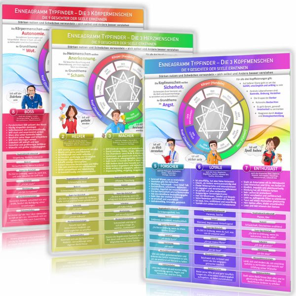 Der erste Typfinder beschreibt die Triade der drei Körpermenschen Zu den Körpermenschen gehören der Charakter "Boss", der "Vermittler" und der "Reformer" Der zweite Typfinder beschreibt die Triade der drei Herzmenschen Zu den Herzmenschen gehören der Charakter "Helfer", der "Macher" und der "Individualist"