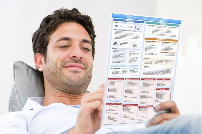 Produktbeschreibung für das 4er Set:Wissenskarte, DINA4, laminiert - NLP CoachingWissenskarte, DINA4, laminiert - NLP InterventionenWissenskarte, DINA4, laminiert - Hypnose Quickfinder IWissenskarte, DINA4, laminiert - Hypnose Quickfinder II Es folgen die Produktbeschreibungen der Einzelprodukte:Bist Du NLP-Coach, NLP Master oder Practitioner? Wer kann schon alles Gelernte im Kopf behalten?Der NLP COACHING QUICKFINDER bietet für jedes NLP-Coaching eine schnelle Übersicht über die wichtigsten NLP-Techniken und -Formate und ist dadurch eine wesentliche Gedankenstütze für den NLP-Coach.Das Arbeiten mit dem Quickfinder macht Spaß und erinnert den Coach an wichtige Fragen, Abfolgen und Interventionen.Er ist hochwertig laminiert und somit sehr strapazierfähig.Lasse Dich schnell erinnern an: Ausführliche Sequenz des Coaching-Rahmens - 7 Auftrags- und Zielfragen + SMART Wohlgeformtheit - 8 x Ökologiefragen - 3 x Interventionen für Test & Manifestation (Convincer, Future Pace, Erster Schritt) - 6 x wichtige Skalenfragen für Erfolgsmessung und Ressourcenaufbau - 17x Rahmenfragen (Lösungsrahmen, Als-Ob-Rahmen, Stellvertreter-Rahmen, Experiment-Rahmen, Fee-Rahmen, Wunderfrage) - - Logische Ebenen (Zeichnung) - - Liste typischer Submodalitäten (visuell, auditiv, kinästhetisch) - Kurzbeschreibung der 6 Ankertechniken + TIGER-Model - 14 x Sleight of Mouth Sprachmuster gegen Glaubenssätze mit Beschreibung und Beispiel - - 1 x einfache Hypnose-Induktion zum Vorlesen Gruppierung von 40 Interventionen nach geschätzter Dauer Besonders nützlich: verschiedene Veränderungsbereiche des Klienten mit ca. 40 zugeordneten passend sortierten Interventionen. Die Bereiche sind: - Ressourcen-Aufbau - Unerwünschtes Verhalten - Negative Gefühle - Ziele - Motivation - Beziehung - Innerer Kritiker - Glaubenssätze - Entscheidungen Die Beschreibung im Einzelnen: NLP Interventionen QuickfinderDer NLP INTERVENTIONEN QUICKFINDER zeigt für 33 NLP-Formate eine Schritt-für-Schritt-Kurzanleitung, sowie zusätzliche Hinweise zur Durchführung. Von Change Future über die Fast Phobia Cure bis zum Visual Squash ist dieser Quickfinder eine wesentliche Gedankenstütze, ein Spickzettel und ein kleines handliches Nachschlagewerk.Das Arbeiten mit dem Quickfinder macht Spaß und erinnert den Coach an wichtige Fragen, Abfolgen und Interventionen. Er ist hochwertig laminiert und somit sehr strapazierfähig.Schnellübersicht mit Kurzanleitungen für: 1.Change Future - Problem in der Zukunft bearbeiten 2.Change History - Problem in der Vergangenheit bearbeiten 3.Circle of Excellence - Ressourcenvollen Zustand leicht verfügbar machen 4.Collapsing Anchors - Unerwünschte Gefühle transformieren 5.Compulsion Blowout - Zwangsverhalten und leichte Süchte lösen 6.Core-Transformation - Im Core-State Probleme lösen 7.Disney Format - Kreative Entwicklung und Realisation von Visionen & Zielen 8.Dynamic Spin Release (Basisversion) - Problem im Geschenk transformieren 9.Entscheidungstimeline - Entscheidungskompetenz stärken 10.Fast Phobia Cure (kinästhetisch) - Auflösung von Ängsten/Phobien 11.Fast Phobie Cure (visuell) - Auflösung von Ängsten/Phobien 12.Kernintention - Starke Ressource finden 13.Logical Level Alignment - Ausrichtung und Klarheit über Zielzustand 14.Mapping Across (mit Submodalitäten) - Internes Selbstmodelling 15.Mentorentechnik - Zugang zu Ressourcen durch Mentoren 16.Meta-Mirror - Erkenntnisse über sich selbst gewinnen 17.Moment of Excellence - Starken Ressourcenanker prägen 18.Museum der Glaubenssätze - Glaubenssatz gegen einen Neuen austauschen 19.New Behavior Generator - Neues Verhalten aneignen 20.New Orleans Flexibility Drill - Beziehungen von Stress befreien 21.Outcome Format - Aus der Zukunft einen Plan entwickeln 22.Pralinée-Format - Starke Motivation für ungewollte Aufgaben 23.Positionswechsel - Zugang zu anderen Perspektiven 24.Re-Anchoring - Neue Reaktion für alten Reiz 25.Reimprinting - Neue Lernerfahrungen vom Prägungsereignis 26.Resolving Grief - Unge