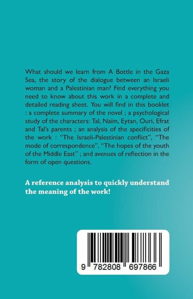 What should we learn from A Bottle in the Gaza Sea, the story of the dialogue between an Israeli woman and a Palestinian man? Find everything you need to know about this work in a complete and detailed reading sheet. You will find in this booklet: - A complete summary of the novel - A psychological study of the characters: Tal, Naïm, Eytan, Ouri, Efrat and Tal's parents - An analysis of the specificities of the work : The Israeli-Palestinian conflict; The mode of correspondence; The hopes of the youth of the Middle East - Avenues of reflection in the form of open questions A reference analysis to quickly understand the meaning of the work.
