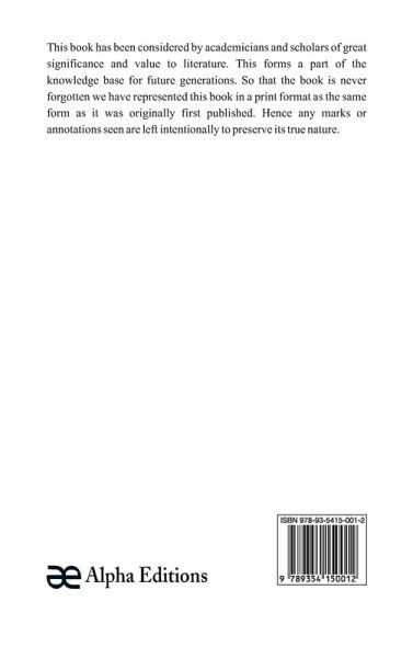 This book has been considered by academicians and scholars of great significance and value to literature. This forms a part of the knowledge base for future generations. So that the book is never forgotten we have represented this book in a print format as the same form as it was originally first published. Hence any marks or annotations seen are left intentionally to preserve its true nature.