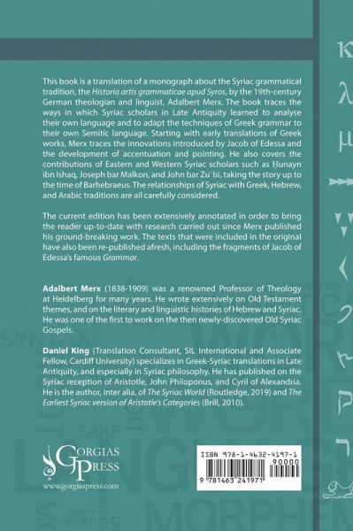 This book is a translation of a monograph about the Syriac grammatical tradition, the Historia artis grammaticae apud Syros, by the 19th-century German theologian and linguist, Adalbert Merx. The book traces the ways in which Syriac scholars in Late Antiquity learned to analyse their own language and to adapt the techniques of Greek grammar to their own Semitic language. Starting with early translations of Greek works, Merx traces the innovations introduced by Jacob of Edessa and the development of accentuation and pointing. He also covers the contributions of Eastern and Western Syriac scholars such as ¿unayn ibn Ishaq, Joseph bar Malkon, and John bar Zübi, taking the story up to the time of Barhebraeus. The relationships of Syriac with Greek, Hebrew, and Arabic traditions are all carefully considered. The current edition has been extensively annotated in order to bring the reader up-to-date with research carried out since Merx published his ground-breaking work. The texts that were included in the original have also been re-published afresh, including the fragments of Jacob of Edessa's famous Grammar.