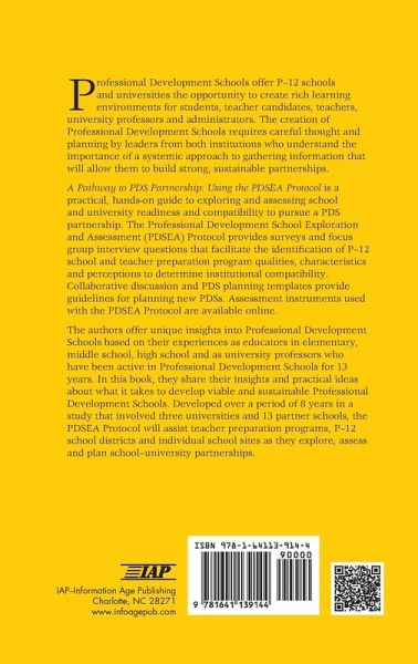Professional Development Schools offer P-12 schools and universities the opportunity to create rich learning environments for students, teacher candidates, teachers, university professors and administrators. The creation of Professional Development Schools requires careful thought and planning by leaders from both institutions who understand the importance of a systemic approach to gathering information that will allow them to build strong, sustainable partnerships. This book is a practical, hands-on guide to exploring and assessing school and university readiness and compatibility to pursue a PDS partnership. The Professional Development School Exploration and Assessment (PDSEA) Protocol provides surveys and focus group interview questions that facilitate the identification of P-12 school and teacher preparation program qualities, characteristics and perceptions to determine institutional compatibility. Collaborative discussion and PDS planning templates provide guidelines for planning new PDSs. Assessment instruments used with the PDSEA Protocol are available online. The authors offer unique insights into Professional Development Schools based on their experiences as educators in elementary, middle school, high school and as university professors who have been active in Professional Development Schools for 13 years. In this book, they share their insights and practical ideas about what it takes to develop viable and sustainable Professional Development Schools. Developed over a period of 8 years in a study that involved three universities and 13 partner schools, the PDSEA Protocol will assist teacher preparation programs, P-12 school districts and individual school sites as they explore, assess and plan school-university partnerships.