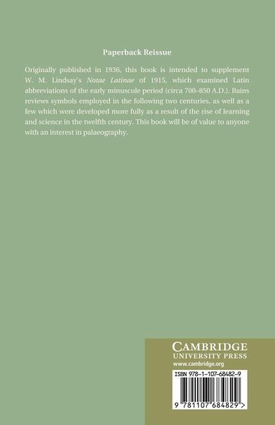 Originally published in 1936, this book is intended to supplement W. M. Lindsay's Notae Latinae of 1915, which examined Latin abbreviations of the early minuscule period (circa 700-850 AD). Bains reviews symbols employed in the following two centuries, as well as a few which were developed more fully as a result of the rise of learning and science in the twelfth century. This book will be of value to anyone with an interest in palaeography.