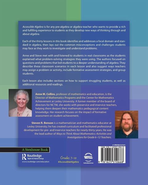 Accessible Algebra: 30 Modules to Promote Algebraic Reasoning, Grades 7-10 is for any pre-algebra or algebra teacher who wants to provide a rich and fulfilling experience for students as they develop new ways of thinking through and about algebra.