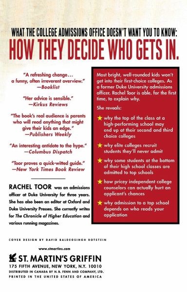 There are hundreds of books available that coach kids on writing college application essays, improving SAT scores and trying to beat the admissions system. Admissions Confidential is a definitive look at why those books don't work. Toor lifts the veil on a process that anxious parents and high school students have never had decoded before. And they may be shocked to find out: --that elite colleges spend thousands of dollars recruiting students they will never admit --why some students at the bottom of their high school classes are admitted to top schools when the valedictorians are rejected --how pricey independent college counselors can hurt an applicant's chances --why admission to a top school depends on who reads your application --why the top of the class at a high-performing high school may end up at their second and third choice Written in engaging first-person and covering the entire admissions process--from recruiting to enrollment--Admissions Confidential is a year in the life of a college admissions officer.