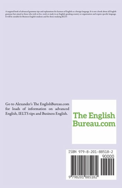 A targeted book of advanced grammar tips and explanations for learners of English as a foreign language. It is not a book about all English grammar but aimed at those who wish to live, work or study in an English-speaking country or organisation and require specific language. It will be suitable for Business English students and for those studying IELTS