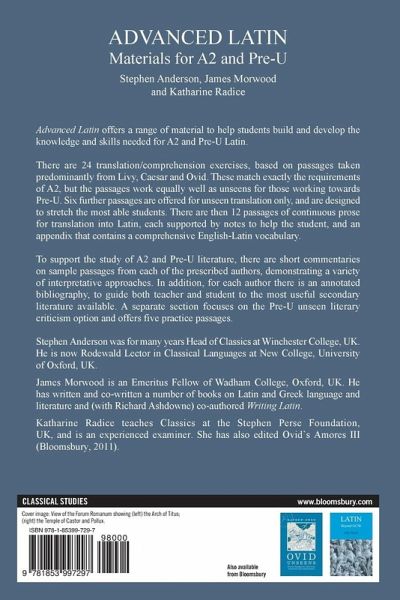 Advanced Latin offers a range of material to help students build and develop the knowledge and skills needed for A2 and Pre-U Latin. There are 24 translation/comprehension exercises, based on passages taken predominantly from Livy, Caesar and Ovid. These match exactly the requirements of A2, but the passages work equally well as unseens for those working towards Pre-U. Six further passages are offered for unseen translation only, and are designed to stretch the most able. There are then 12 passages of continuous prose for translation into Latin, each supported by notes to help the student; and an appendix that contains a comprehensive English-Latin vocabulary. To support the study of A2 and Pre-U literature, there are short commentaries on sample passages from each of the prescribed authors, demonstrating a variety of interpretative approaches. In addition, for each author there is an annotated bibliography, to guide both teacher and student to the most useful secondary literature available. A separate section focuses on the Pre-U unseen literary criticism option and offers six practice passages.