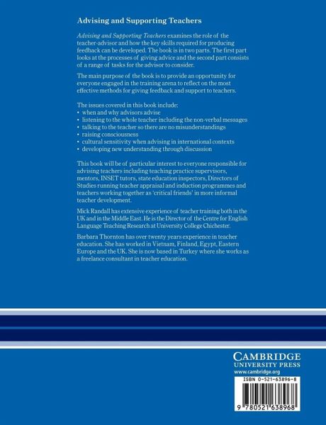 This book is aimed at all those responsible for advising teachers including teaching practice supervisors, mentors, INSET tutors, state education inspectors, directors of studies, and teachers working together as 'critical friends' in informal teacher development.