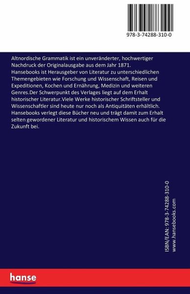 Altnordische Grammatik ist ein unveränderter, hochwertiger Nachdruck der Originalausgabe aus dem Jahr 1871.