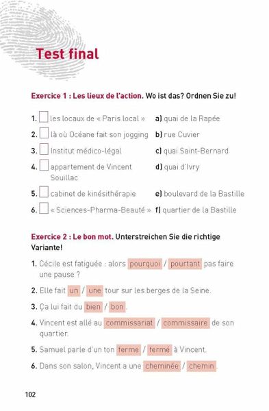 Ein spannender Krimi auf Französisch: Schlüpfen Sie in die Rollen der Ermittler_innen und verbessern Sie Ihre Französisch-Kenntnisse ganz intuitiv. Muttersprachliche Autorin: Unsere Texte wurden von Muttersprachler_innen speziell für das Niveau A2 verfasst. Textbezogene Übungen: Die eingebundenen Übungen steigern den Lernerfolg und gliedern sich spielerisch in den Lesefluss ein. Vokabelangaben auf jeder Seite: Schwierige Wörter werden auf jeder Seite angegeben und sind ohne umständliches Blättern sofort griffbereit. Umfangreiches Glossar: Das alphabetische Glossar am Ende des Buches ermöglicht es, die Wörter aus allen Texten auch nachträglich nachzuschlagen. Infokästen zu Sprache und Grammatik: Zusätzliche Informationen, Tipps und Wissenswertes zu Sprache, Grammatik und Landeskunde ergänzen Ihren Lernkrimi Classic "Amour toxique".