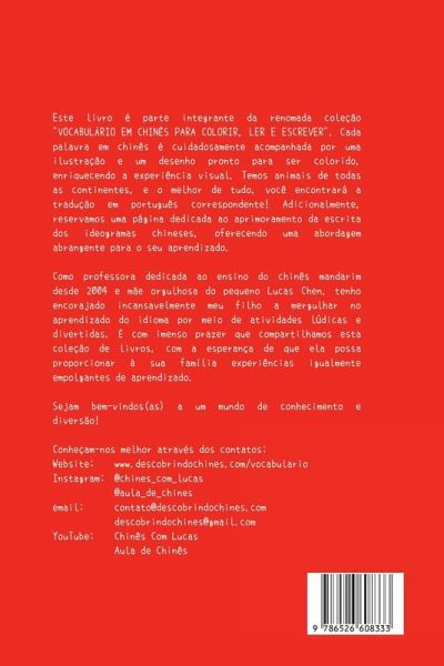 ANIMAIS EM CHINÊS PARA COLORIR, LER E ESCREVER é parte integrante da renomada coleção VOCABULÁRIO EM CHINÊS PARA COLORIR, LER E ESCREVER . Cada pa