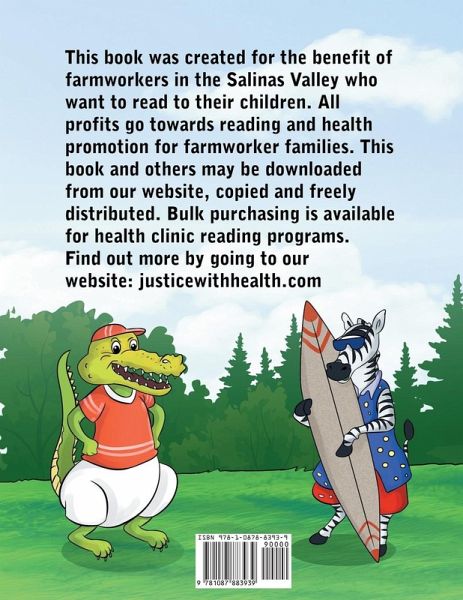 An alphabet book full of animals and alliterations. Alligator aims apple at airplane. Bear buys big bag of black beans. The pictures are entertaining for children and adults. The alliterations are useful for developing phonemic awareness in early readers and future readers. Children will want to read this book again and again. There's no other alphabet book quite like it. All profits will be donated towards reading and health promotion for farmworker families.