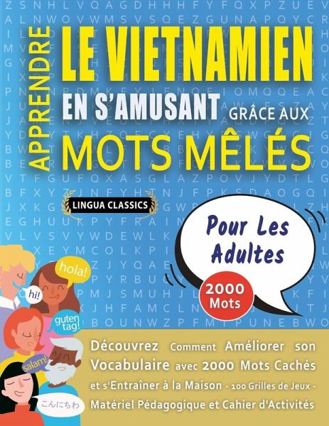 * APPRENDRE LE VIETNAMIEN TOUT EN S'AMUSANT - ENRICHISSEZ VOTRE VOCABULAIRE FACILEMENT ! Les Mots Mêlés Sont Une Technique D'Apprentissage Efficace Utilisée Dans Les Écoles Pour Améliorer Son Vocabulaire - C'est Un Jeu Idéal Pour Stimuler L'Apprentissage ! Cette série de livres a été conçue en fonction du niveau de chaque personne. Que vous soyez débutant, intermédiaire ou que vous aidiez votre enfant à apprendre une nouvelle langue, vous trouverez le livre qui répondra à vos besoins. Comment ? Améliorez votre niveau avec une activité stimulante ! C'est un excellent complément pour tous ceux qui apprennent une langue. Avec +40 heures de divertissement, vous découvrirez et pourrez apprendre à retenir plus de 2000 mots. UN LIVRE D'ÉTUDE UNIQUE : - VOCABULAIRE SPÉCIFIQUE : Profitez d'une sélection par âge et par niveau de +2000 mots - APPRENTISSAGE ACTIF : Un espace permet au lecteur de réaliser sa propre traduction - PUZZLES EN GRAND FORMAT : Conçus pour la meilleure lisibilité possible. - FEUILLETEZ AVANT D’ACHETER : Pas de surprise, cliquez sur la couverture - SOLUTIONS FACILEMENT LISIBLES : Des solutions dans un format clair et simple - DIVERTISSEMENT : Assez difficile pour être stimulant, assez facile pour devenir addict DÉVELOPPEZ VOS COMPÉTENCES LINGUISTIQUES : - Pratique Les jeux de mots mêlés transforment le défi d'apprendre une langue en un plaisir ! - Progressez Apprenez avec un vocabulaire commun adapté à vos compétences. - Retenez ce que vous apprenez Une technique d'apprentissage active pour augmenter votre vocabulaire. - Atteignez vos objectifs Ne vous contentez pas de pratiquer passivement. Cherchez les traductions de nouveaux mots - trouvez-les dans le Puzzle - ajoutez-les à votre vocabulaire ! DISPONIBLE DANS PLUS DE 50 LANGUES POUR : - Débutant - Intermédiaire - Avancé - Enfants de 6 à 8 ans - Enfants de 8 à 10 ans - Enfants de 9 à 12 ans - Adolescents - Adultes - Seniors Consultez notre collection complète - Recherchez ""LINGUA CLASSICS"" et découvrez de nouveaux livres pour vous améliorer - un cadeau infaillible pour votre famille et vos amis ! Profitez dès maintenant de cet apprentissage ludique - DEVENEZ AMIS AVEC UNE NOUVELLE LANGUE FACILEMENT ! ------- [ENGLISH] ------- Note: Some content in English might be missing due to length restrictions. * LEARN VIETNAMESE WHILE HAVING FUN - BUILD VOCABULARY EASILY! Word Searches Are an Effective Technique Used in Schools to Increase Vocabulary - It’s an Ideal Game to Stimulate Learning! This book series has been tailored to each person’s specific level. Whether you are a beginner, advanced, or helping your child learn a new language you’ll find the right book for your needs. Why? It’s a great complement for anyone learning a language. Make it easy with an encouraging activity! With +40 hours of entertainment, you will discover and be able to retain over 2000 words: AN EXCITING STUDY COMPANION WITH: - AGE &...