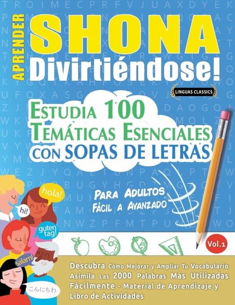 * APRENDER SHONA CON SOPA DE LETRAS - Descubra Cómo Enriquecer Tu Vocabulario Fácilmente! Estudiar Gracias a Las Sopas De Letras Es Una Técnica De Aprendizaje Eficaz Que Se Utiliza En Las Escuelas Para Mejorar El Vocabulario - ¡Es Un Juego Ideal Para Estimular El Aprendizaje! Esta serie de libros ha sido diseñada para adaptarse al nivel de cada persona. Tanto para principiantes, como para niveles intermedios o ayudar a su hijo a aprender un nuevo idioma, encontrarán el libro adecuado para sus necesidades. ¿Cómo? Es un excelente complemento para cualquiera que aprenda un idioma. Los estudios sobre el aprendizaje demuestran que es más fácil memorizar palabras nuevas cuando están conectadas por una misma temática. También es más sencillo aprender palabras que tienen un significado concreto (como Árbol) en lugar de uno abstracto (como Ciudadanía). Asimila Las 2000 Palabras Más Utilizadas Fácilmente - Enriquece tu vocabulario con listas temáticas como: Alimentos, Colores, Transportes, Emociones... Haz que el aprendizaje sea más fácil con esta actividad inteligente. Con +40 horas de entretenimiento, descubrirá: UNA TÉCNICA DE ESTUDIO ESTIMULANTE CON: - UN APRENDIZAJE ACTIVO: Se proporciona un espacio para animarte a hacer tu propia traducción. - UNA TRADUCCIÓN PRÁCTICA: El vocabulario esencial está disponible en la última sección. - VOCABULARIO ESPECÍFICO: Disfruta de una selección por edad y nivel de +2000 palabras. - LISTAS DE VOCABULARIO TEMÁTICO: Estudia eficazmente los temas de la vida práctica con las palabras más utilizadas! - ORGANIZA TUS CONOCIMIENTOS: Se ofrece una sección de notas, un libro de estudio todo-en-uno! - ENTRETENIENDO: Lo suficientemente difícil para ser un desafío, lo suficientemente fácil para ser adictivo. DESARROLLA TUS HABILIDADES LINGÜÍSTICAS: - Práctica Las Sopas De Letras Convierten El Reto de Aprender Un Idioma en Un Placer! - Progreso Aprenda Con Listas de Vocabulario Temáticas Adaptadas a Tus Habilidades. - Recuerda Lo Que Aprendes Una Técnica De Aprendizaje Activa Para Aumentar Su Vocabulario. - Alcanza Tus Metas No Practiques Solo Pasivamente. Encuentra Nuevas Palabras en El Rompecabezas - Busca Las Traducciones en El Diccionario Proporcionado - ¡Añádelas a Tu Vocabulario! DISPONIBLE EN MÁS DE 80 IDIOMAS PARA: - Niños - Adultos - Principiantes - Niveles Intermedios y Avanzados ¡Disfruta de Esta Divertida Experiencia de Aprendizaje Ahora - HAZTE AMIGOS CON SHONA FÁCILMENTE! ------- [ENGLISH] ------- Note: Some content in English might be missing due to length restrictions. * LEARN SHONA EASILY WITH WORD SEARCH PUZZLES - Discover How to Improve Foreign Language Skills with a Fun Vocabulary Builder! Word Searches Are an Effective Technique Used in Schools to Enhance Vocabulary - It’s an Ideal Game to Stimulate Learning! This book series has been tailored to each person’s specific level. Whether you are a beginner, advanced, or helping your child learn a new language, you’ll find the right book for your needs. Why? It's a great compliment for anyone practicing a foreign language. Studies about learning show that it's easier to memorize new words when they are connected by the same thematic. It's also