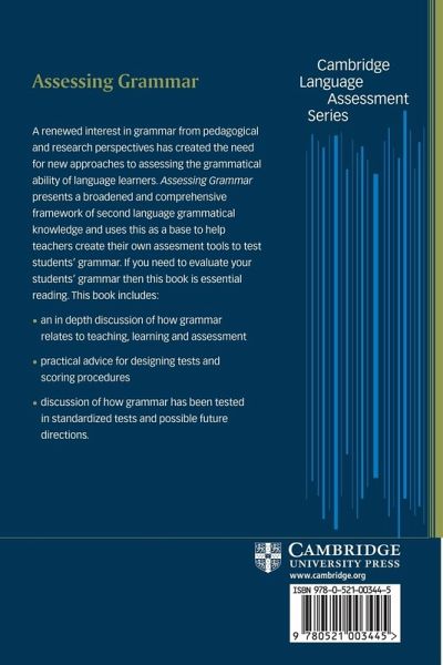 A renewed interest in grammar, from pedagogical and research perspectives, has created the need for new approaches to assessing the grammatical ability of language learners. This book presents a comprehensive framework of second language grammatical knowledge and uses this as a base to help readers create their own assessment tools to test students' grammar.
