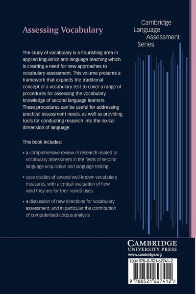 This volume presents a framework that expands the traditional concept of a vocabulary test to cover a range of procedures for assessing the vocabulary knowledge of second language learners.