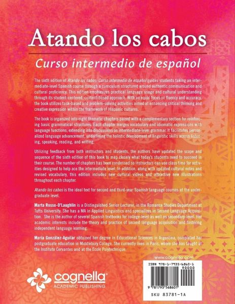 The sixth edition of Atando los cabos: Curso intermedio de español guides students taking an intermediate-level Spanish course through a curriculum structured around authentic communication and cultural proficiency. This edition emphasizes practical language usage and cultural understanding through its student-centered, content-based approach. With an equal focus on fluency and accuracy, the book utilizes task-based and problem-solving activities aimed at enhancing critical thinking and creative expression within the framework of Hispanic cultures. The book is organized into eight thematic chapters paired with a complementary section for reinforcing basic grammatical structures. Each chapter merges vocabulary and idiomatic expressions with language functions, extending into discussions on intermediate-level grammar. It facilitates personalized language advancement, underlining the holistic development of linguistic skills across listening, speaking, reading, and writing. Utilizing feedback from both instructors and students, the authors have updated the scope and sequence of the sixth edition of this book to map closely what today's students need to succeed in their course. The number of chapters has been condensed so instructors can use class time for activities designed to help ace the intermediate level. In addition, along with updated cultural notes and revised vocabulary, this edition includes new cultural videos and attractive new illustrations throughout each chapter. Atando los cabos is the ideal text for second and third-year Spanish language courses at the undergraduate level.