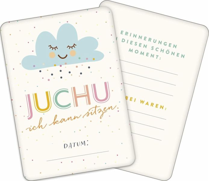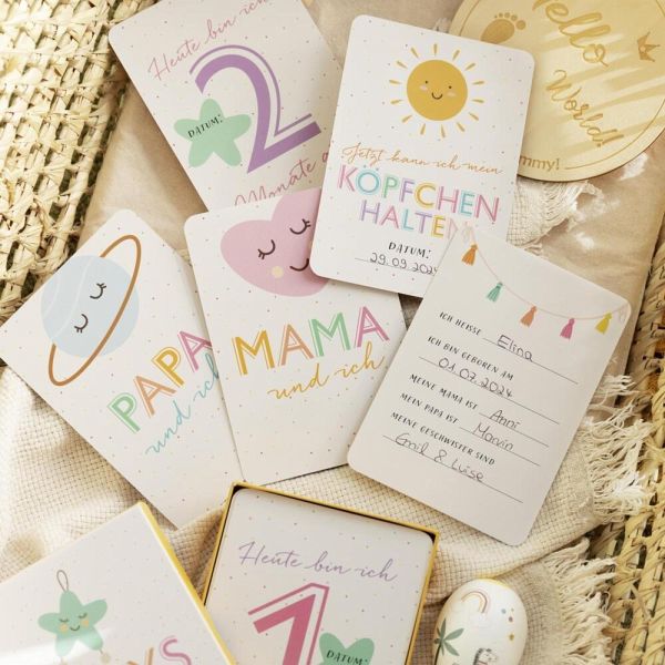 Das erste Jahr mit Baby ist besonders aufregend und ereignisreich. Die liebevollen Meilensteinkarten sind ein wunderbares persönliches Baby-Erinnerungsalbum. Mit 50 stabilen Karten können wichtige Momente und Meilensteine aus Babys erstem Jahr dokumentiert werden. Ob das erste Lächeln, der erste Geburtstag oder das erste Bad: Hier lassen sich alle besonderen Augenblicke auf persönliche Weise festhalten. Eine wunderbare Geschenkidee zur Geburt für frischgebackene Eltern.