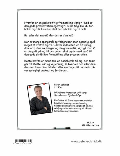 Hvorfor er en god skriftlig fremstilling vigtig? Hvad er den gode præsentation egentlig? Hvilke ting skal du forholde dig til? Hvorfor skal du forholde dig til det? Betyder det noget? Gør det en forskel? Der er mange spørgsmål, mange faldgruber, men egentlig også meget at støtte dig til. Udover indholdet, er dit sprog - dine ord, dine sætninger og din grammatik - vigtige. For så er du godt på vej til den gode tekst og dermed også til den gode skriftlige fremstilling eller præsentation. Dette hæfte er ment som en basishjælp til dig, der trænger til støtte, råd og vejledning, så hverken den eller dem, der skal læse dine tekster eller modtage dit budskab bliver sprogligt anskudt og forbløder.