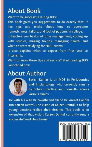 Want to be successful during BDS? This book gives you suggestions to do exactly that. It has tips and tricks about how to overcome homesickness, failure, and lack of patients in college. It teaches you basics of time management, coping up with studies, making friends, managing health, and when to start studying for NEET exams. It also explains what to expect from first year to internship. Want to know these tips and secrets? Start reading BDS Launchpad now.