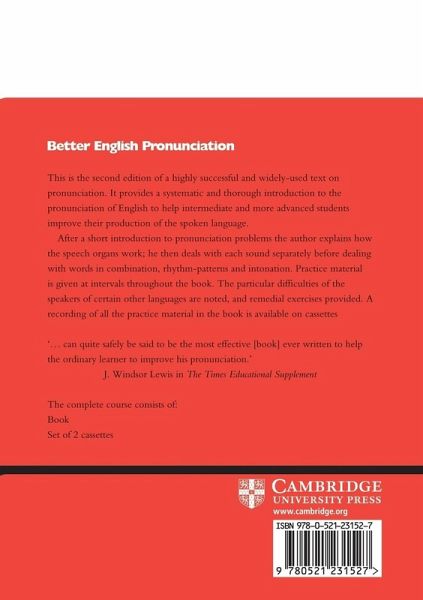 This is a cassette of a highly successful and widely-used text on pronunciation. It provides a systematic and thorough introduction to the pronunciation of English to help intermediate and more advanced students improve their pronunciation of the spoken language. A recording of all the practice material in the book is available on the cassettes.