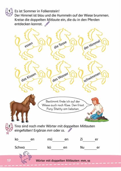 Über 100 Lernrätsel für das Fach DeutschSattelfest werden in den wichtigsten Grundlagen im Fach DeutschMit nützlichen Tipps von Bibi und Tina auf jeder RückseiteLösungen zur SelbstkontrolleExtra: Schwierigere Sternchenaufgaben für Kinder, denen kein Hindernis zu hoch ist