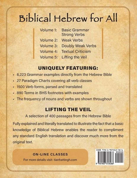 This is Biblical Hebrew for All: Volume 3 (Intermediate) - Second Edition, the third book in a five volume series titled Biblical Hebrew for All (Volumes 1-5). Biblical Hebrew for All: Volume 3 (Intermediate) - Second Edition, is intended as a self-study textbook for beginners and undergraduate students, focused on weak verbs and irregular verbs. From the preface of Biblical Hebrew for All (Intermediate) - Volume 3: After successfully mastering the structures of strong and weak verbs, students are now able to move on to the next, and last, step in understanding the verbs of the Hebrew Bible. In this volume, we deal with a number of verbs that display a combination of two "weak" characteristics and are therefore known as the "doubly weak" verbs. In addition, a number of totally unique verbs, as well as the stative verbs, are covered... About Biblical Hebrew for All (Volumes 1-5) As a whole, the full Biblical Hebrew for All (Volumes 1-5) series features: ¿ 6,223 Grammar examples directly from the Hebrew Bible ¿ 27 Paradigm Charts covering all verb classes ¿ 1500 Verb forms, parsed and translated ¿ 890 Terms in BHS footnotes with examples ¿ The frequency of nouns and verbs shown throughout The full five volume series literally 'lifts the veil' in that it comprises 'a selection of 400 passages from the Hebrew Bible, all fully explained and literally translated to illustrate the fact that a basic knowledge of Biblical Hebrew will enable the reader to compliment any standard English translation and discover much more from the original text'. As a result of his own passion and drive to teach others language, Tian Hattingh has put together straightforward methods and approaches which facilitate students to efficiently learn Biblical Hebrew, (as well as other languages too). Since 2002 Tian has been engaged in working and running ESL/IELTS language schools in Asia, and on taking sight (in photographs) of some of Tian's many hundreds (if not thousands in total) of enthusiastic, happy and joyful language students - one can immediately know that a wonderful teacher and tutor has been found. Tian has a passion and natural gift for learning, studying and teaching languages to aspiring students - and has been doing so for the last 47 years since he began studying the Zulu language in South Africa in 1974. The year 1974 also saw Tian begin studying Hebrew and it was not long before he was running beginner classes at a polytechnic in Rustenburg, South Africa, teaching others the Hebrew language. Since that time Tian has spent considerable time traveling in Israel further developing his understanding of Biblical Hebrew - and between 2014 to 2016 Tian conducted classes for beginners in Biblical Hebrew in the city of Shenzhen, China. Since 2016, since moving to Vietnam, as well as continuing to work at ESL/IELTS language schools, Tian has focused on teaching Biblical Hebrew via online methods - based upon the system of learning 'expressed' and illustrated in the five volumes of Biblical Hebrew for All. The five volumes cover the following: Volume 1: Basic Grammar & Strong Verbs Volume 2: Weak Verbs Volume 3: Doubly Weak Verbs Volume 4: Textual Criticism Volume 5: Lifting the Veil
